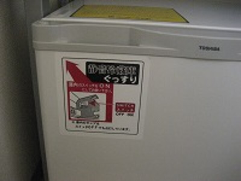 | 静音仕様の冷蔵庫。部屋のドアは隙間がないタイプで防音もバッチリ! |