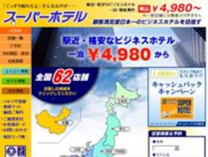 スーパーホテル※全国62店舗の概要や予約ができます。