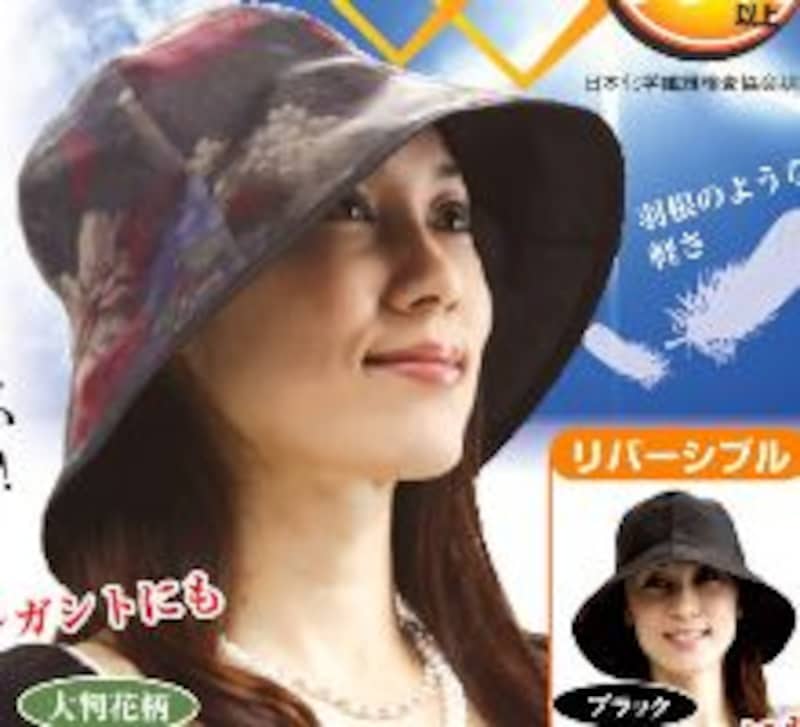 | 重さ約30グラム。UVカット、防水加工のほか、リバーシブルなので服に合わせてお洒落に(3200円) |