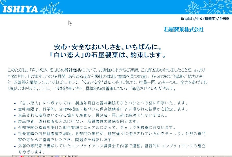 | HPでは、今後の対策が明記されている(11/19現在) |