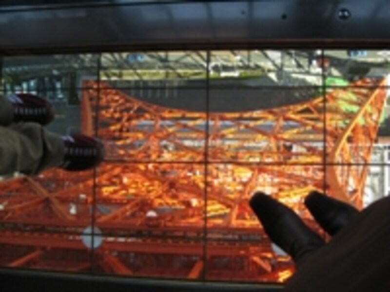 | 東京タワーの大展望台に(料金込)。下が透けるガラスの上で肝試し? |