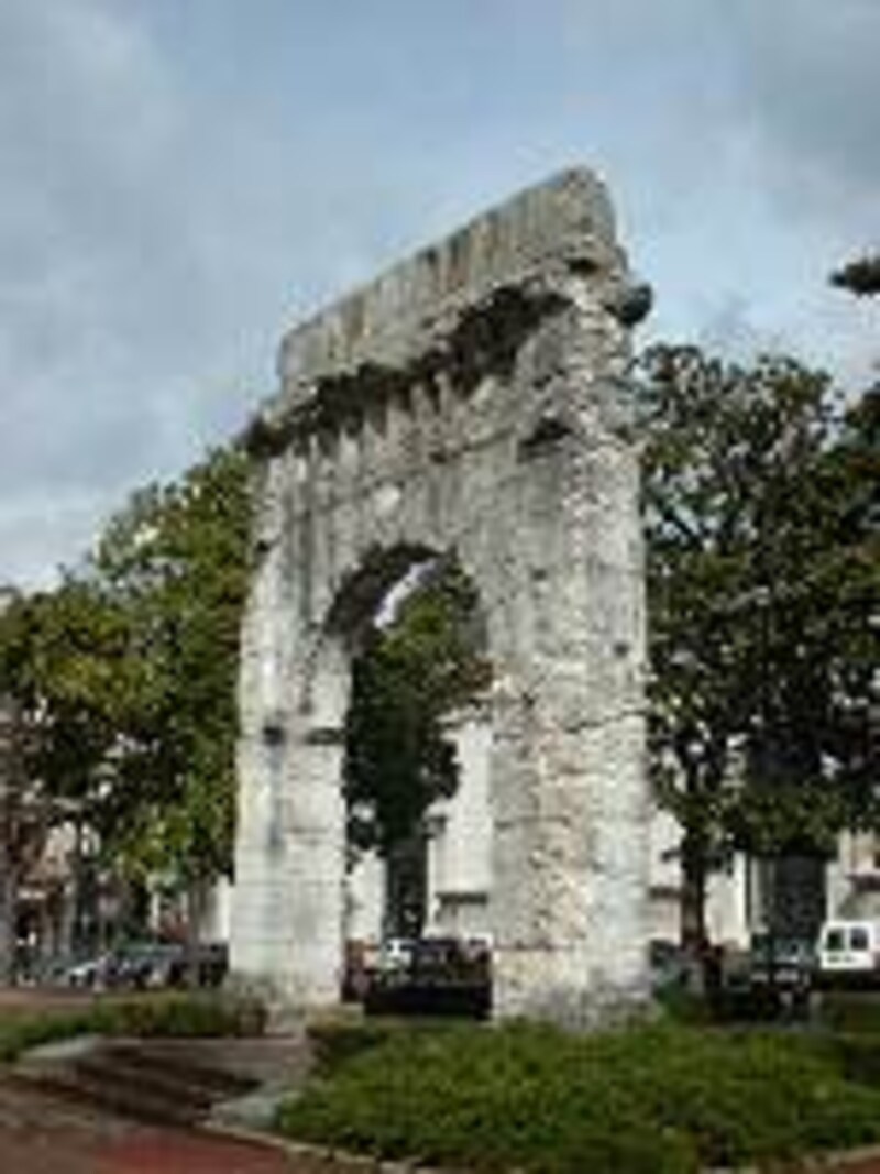 教えられてやって来ました、ここは街の中心モラール広場(Place M.Mollard)。こりゃまた古臭いってったら失礼かな、えらく時代物の門があるねえ。なになに、カンパニュスのアーチ?お、ローマ時代に建てられたのか。紀元前20年って言えばもう2000年以上もここに立ってるんだな。