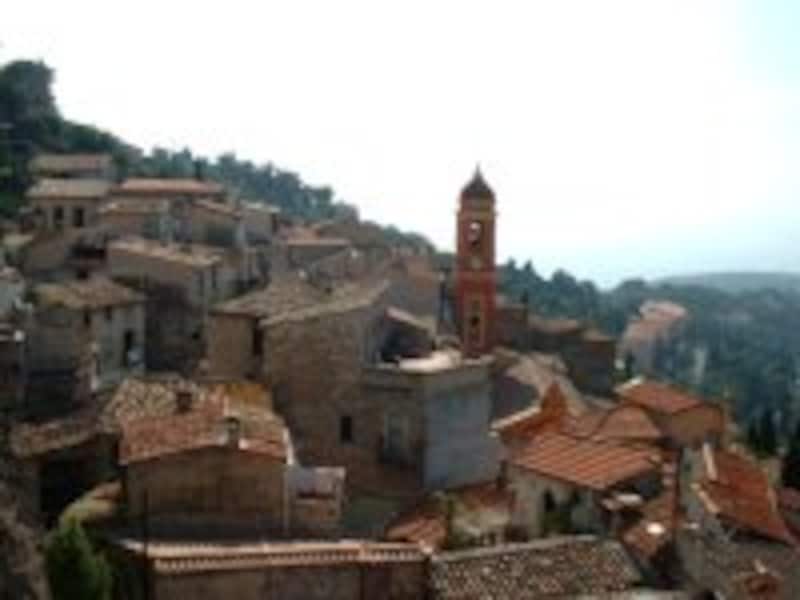 | 山のてっ辺にへばりつく砦と村々。鷲巣村の中でもぴか一の美しさを誇るロクブリュヌの村は、入り組んだ海岸線も又はっとするような美しさ。 |