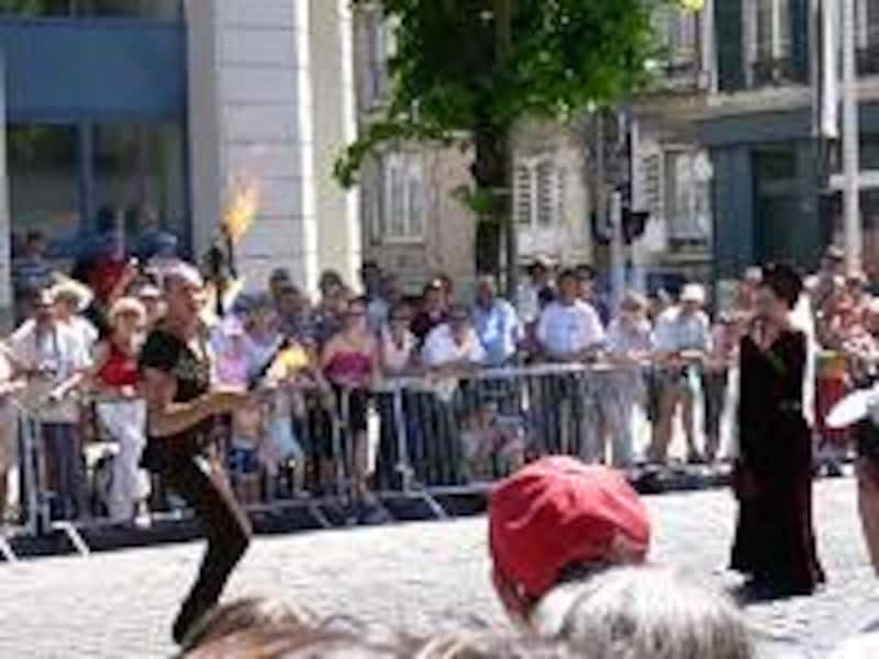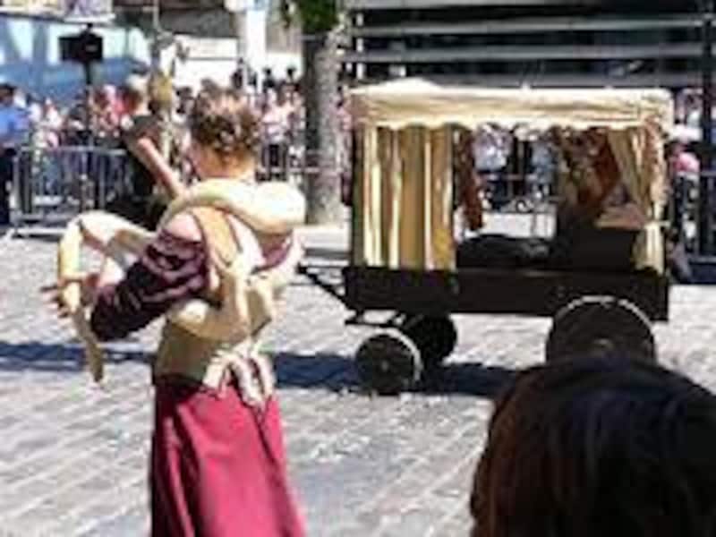 | 中世からの伝統的な笛の音をバックにパフォーマンス集団が先頭を切ってやってきた。 |