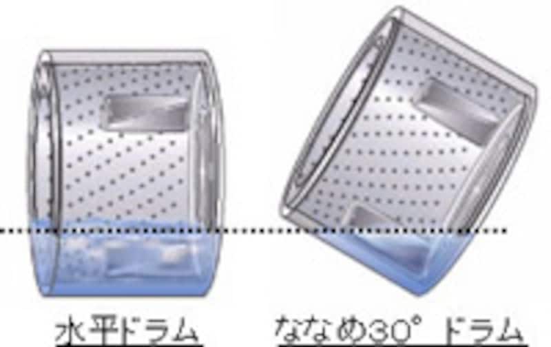 右図のように、中の洗濯槽が斜めのため、洗濯水があふれることなく、運転開始後でも扉が開けられるのです。スタートボタンを押してしまってから「あっ!忘れてた」と、洗濯物を追加したいことってありますよね。些細なことですが、日常の家事では、こういう細かい使い勝手が重要。毎日のことだからこそ、ストレスなく使えるのが一番です!◆◆ すすぎの速さは、充分な泡立てが秘訣! ◆◆