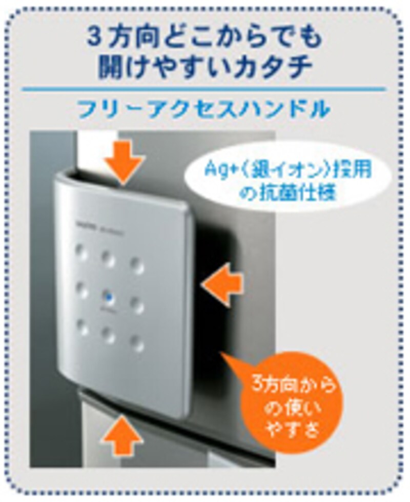 TOSHIBAの「電動タッチオープン」は、冷蔵室のドアのハンドルを軽く押すだけで自動的にドアが開く機能。両手に物を持っていても簡単に開けられ、日常的にはとても便利。誰にでも優しい「ユニバーサルデザイン」のひとつです。しかしガイドの経験上、もう少しスローに開くとより安全では?と感じることもあります。