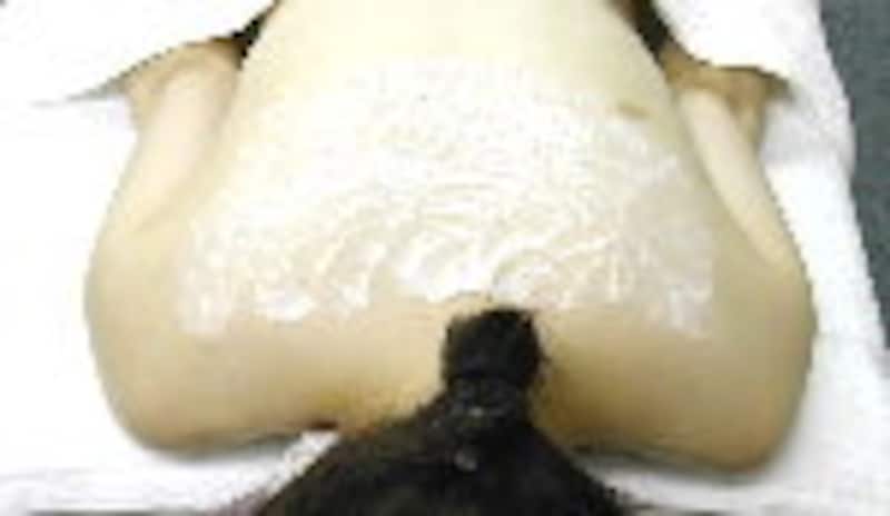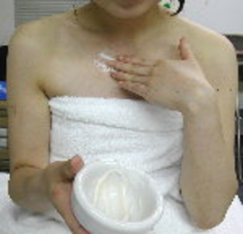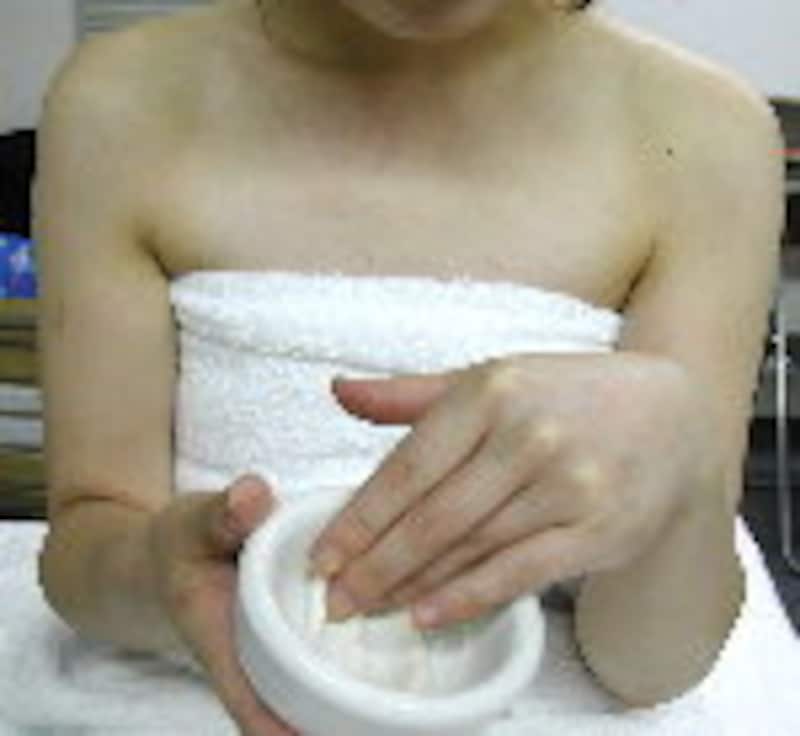 (1)完成したクレイパックを胸や背中に塗り広げます。