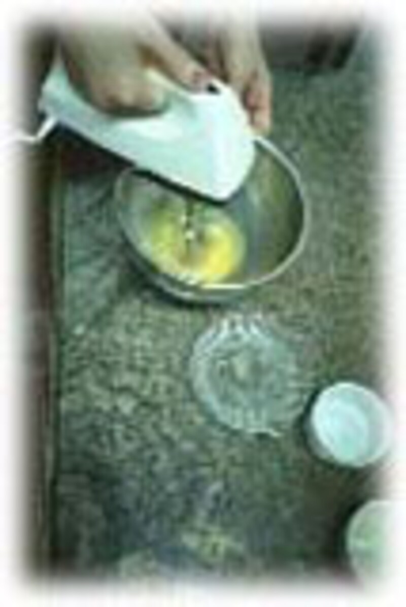 | 使う道具: ボウル大/1、泡立て器/1、ハンドミキサー/1 |