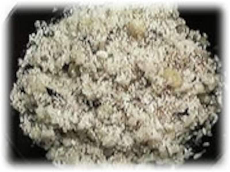 2/ 次は詰め物の用意をします。材料:米1カップ(洗って30分以上水に漬けておきます)、水1カップに鶏がらスープの素小さじ1を入れたスープ、 玉ねぎ1/2コ、しめじ1/2パック、ぎんなん(茹でて皮をむいたもの)10つぶ、ごま、粉チーズ。 あたためたフライパンに、バター大さじ1をいれて、玉ねぎ、しめじのみじん切り、お米を入れてよく炒めます。焦げ付きやすいので手早くやってください、どうしても焦げ付きそうなときは時は、バターを少し足してください。 次にスープを加え、とろ火でゆっくりとかき混ぜながら20分煮ます。10分ほどたったら銀杏をいれます。最後に、ごま、粉チーズを加えてでき上がりです。 |