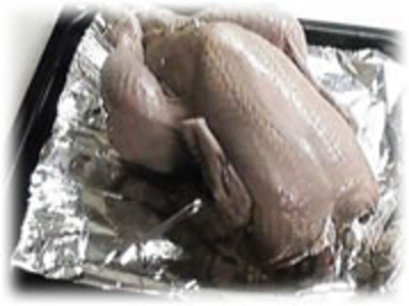 1/ 鳥はきれいに洗い、塩を全体に充分にすり込み、15分ぐらい置いておきます。