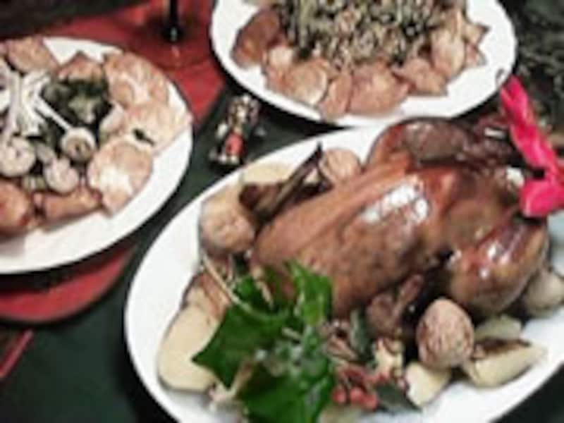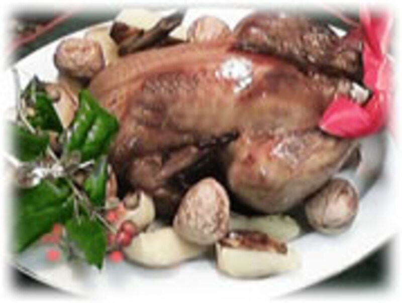 いよいよ今年もクリスマスが近づいて来ましたね!!今年は、手づくりのたれを使って焼き鳥風味のローストチキンを作ってみませんか? もちろん「手づくりのたれ」のレシピもご紹介します。 香ばしく焼き色がついた鳥の丸焼き・・・チキンの中には、銀杏入りの炒めご飯がぎっしり詰まっています。この一品があるだけで、食卓が華やかになります。あとは楽しい会話と笑顔が、パーティに華をそえますよ!! |