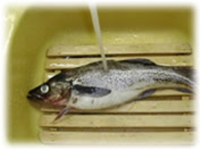 たらに塩を振りかけてもみ、流水できれいにあらいます。 |