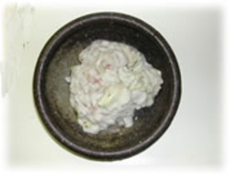 | 真っ白な白子がいっぱい入っています。ていねいに取りだします。肝も一緒に取りだします。 | 取り出した白子は、かるく水洗いしておきます。 | |