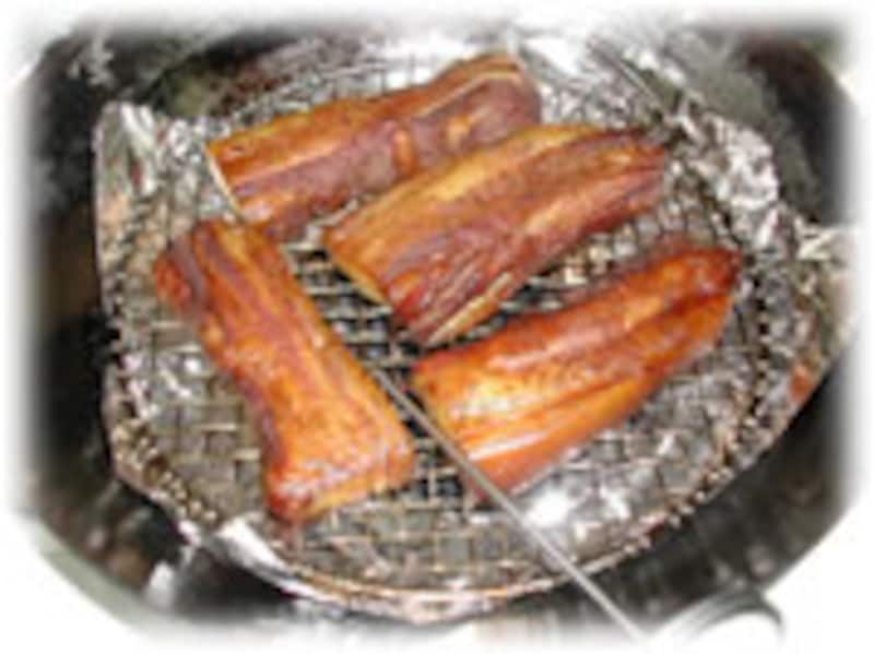 この方法なら気楽にお惣菜を作るように、燻製づくりを楽しむことができます。冷蔵庫で保存し、二週間以内に使い切るようにしてください。 本格的にするには、手づくりの本格ベーコンをご覧ください。