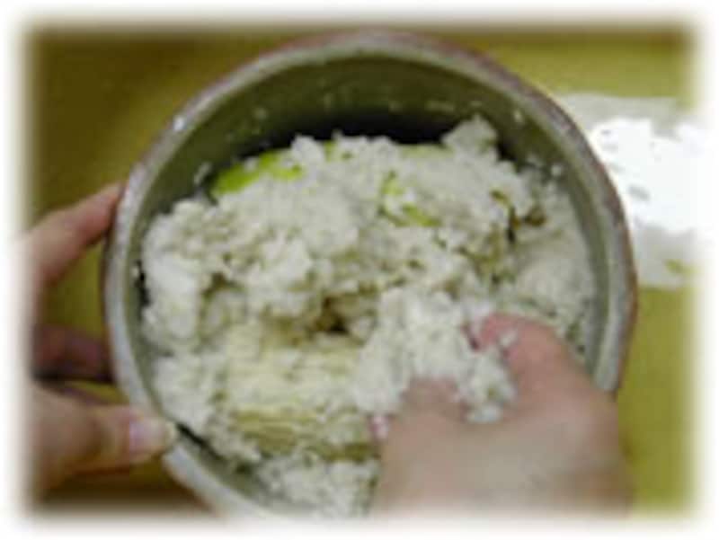 | 冬の間に糀と塩が馴染んでくると、三五八漬は暖かくなってからも、いろいろな野菜漬けに使える糀床として、とても重宝します。ぜひ我が家のオリジナル糀床を作ってみてください。 | ||