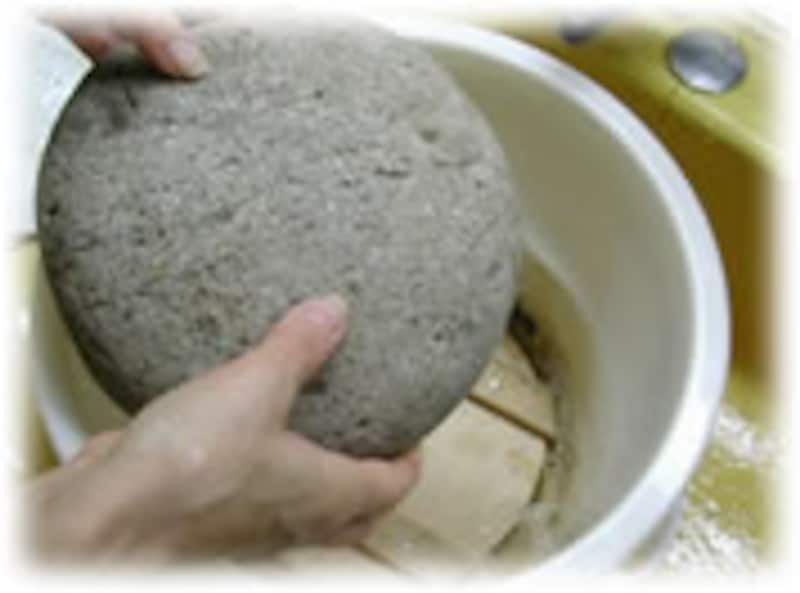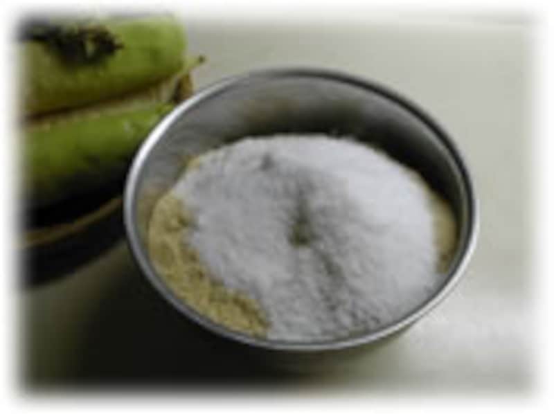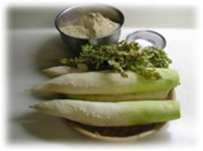 | 材料:大根4本(約2kg)、塩100g(大根の重さの5%)、米糠1kg、昆布10cm、鷹のツメ10本くらい。 | 1:ボールに米糠と塩を入れて、よく混ぜ合わせます。 米糠にはビタミン類がとても豊富に含まれています。干し大根を漬けることで、この栄養素が大根に浸透し、栄養価の高い健康食品ができあがるわけです。 |