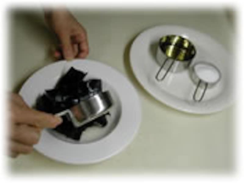 | 6:昆布は、5cmぐらいに切り、酢に漬けて柔かくしておきます。 | 7:漬け樽に塩漬けした大根を一段づつ塩漬けと同じように順に入れて、砂糖、みりん、酢で柔かくした昆布を加えます。 | |