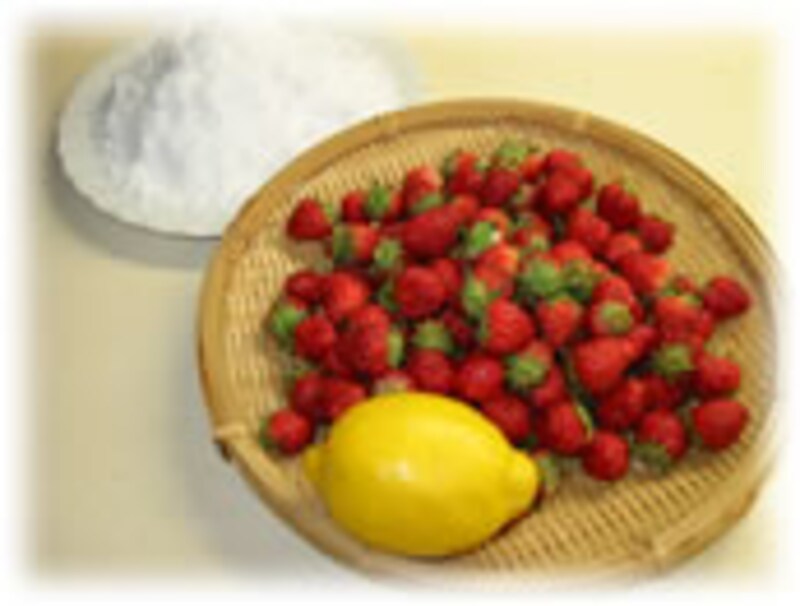 材料:イチゴ1kg(約3パック)、グラニュー糖500g、レモン1個 |