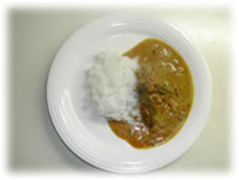 | 8:作り始めてから丁度1時間たちました。これだけの時間でこんなに美味しそうなカレーのできあがりです。。 |
