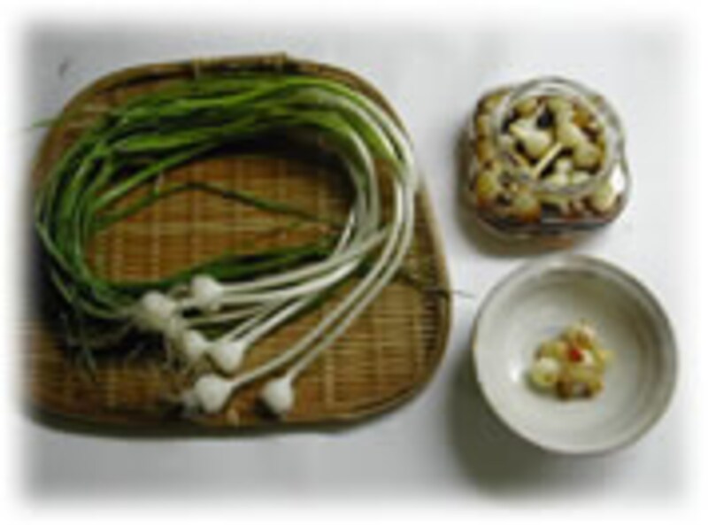 | 今回のページは次のように構成しました。 1:山菜の天ぷら 2:フキの葉の佃煮 3:ノビルの醤油漬け(このページです) 4:桜の花の塩漬け 5:木の芽の塩漬け |