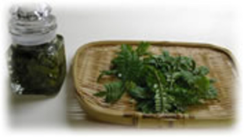 | 山椒の木の芽を摘み取ります。よく水洗いし、ざるで水気を充分にとります。 | 20%の食塩水を作り煮立たせ、充分に冷めてから山椒の新芽をビン詰めにします。 | |