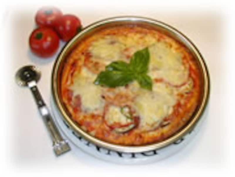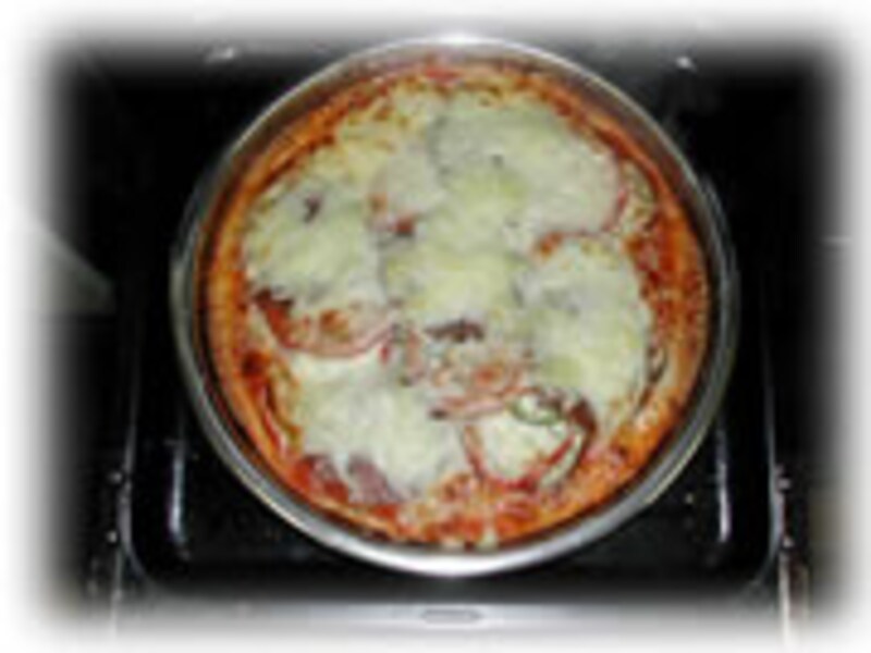 | 8:250℃に熱したオーブンの上段で10~15分間焼きます。 | 9:さあ、美味しい「サラミと野菜のピザ」のでき上がりです!! | |