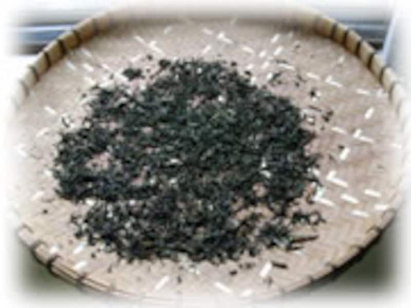 | 7・ある程度細かく撚れたら、大きなザルに広げて充分乾燥させます。 | 8・茎茶も同じように作り、緑の色鮮やかな茎茶と煎茶ができました。 | |