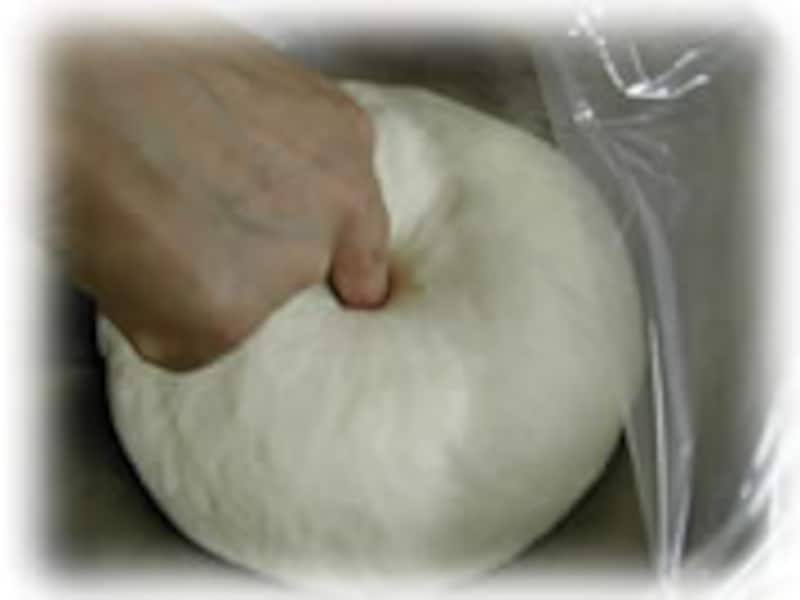 (9)発酵が終わった生地に、指先に粉を付けて生地の真ん中に入れてぬき、穴がふさがるようだったら、まだ発酵不足です。 |