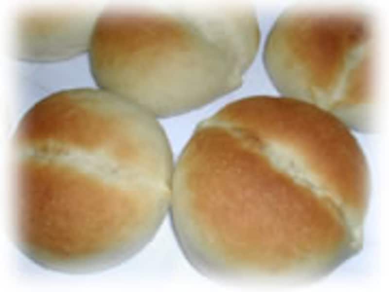 材料:6コ分 強力粉300g、砂糖(三温糖)10g、塩5g、ドライイースト5g、ぬるま湯〔40℃)190ml、オリーブオイル小サジ2 |