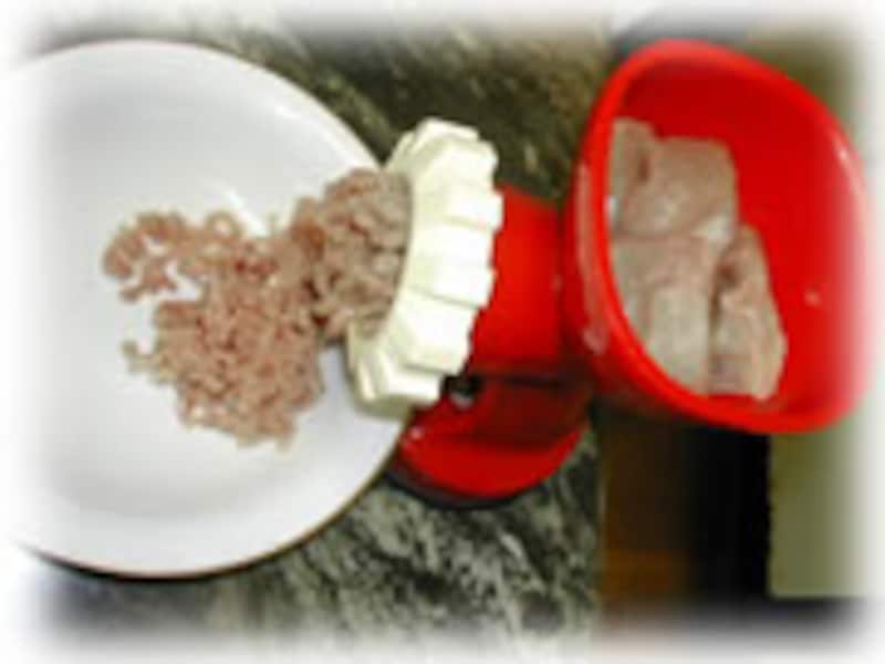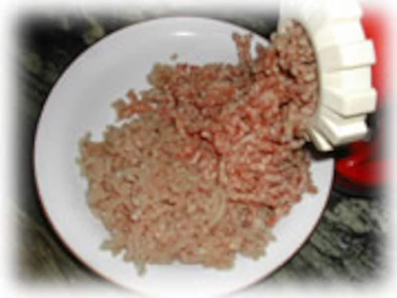 合挽きミンチも手作りすれば、まじりけのないヘルシーなミンチ肉ができますね。 |