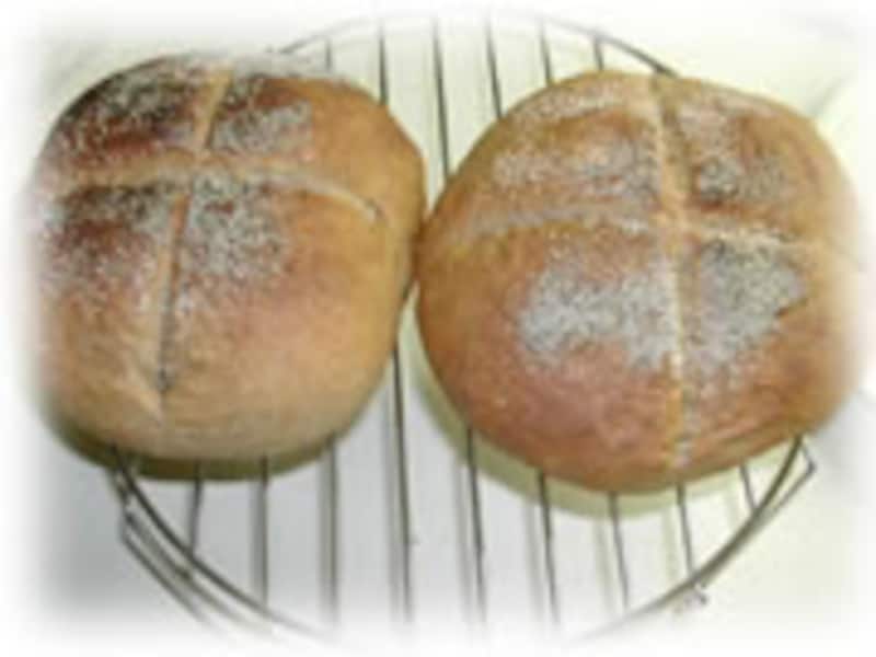 | 15・焼き上がったパンは取り出して、網の上で冷まします。 | さあどうぞお召し上がりください! キャラウェイの香りが食欲をそそりますね。 |