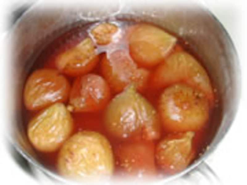 やわらかく艶のよい、とろりとしたコンポートができました。ハチミツの量はお好みで控えても充分に甘いですよ。 |