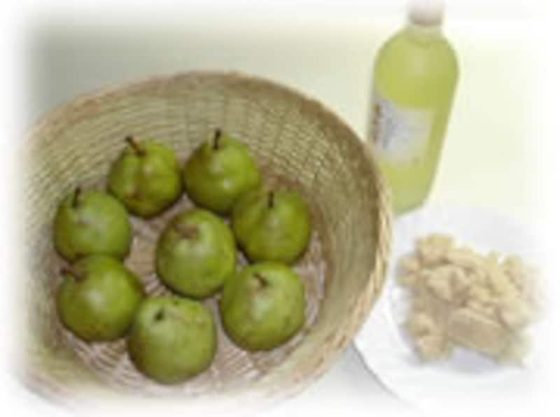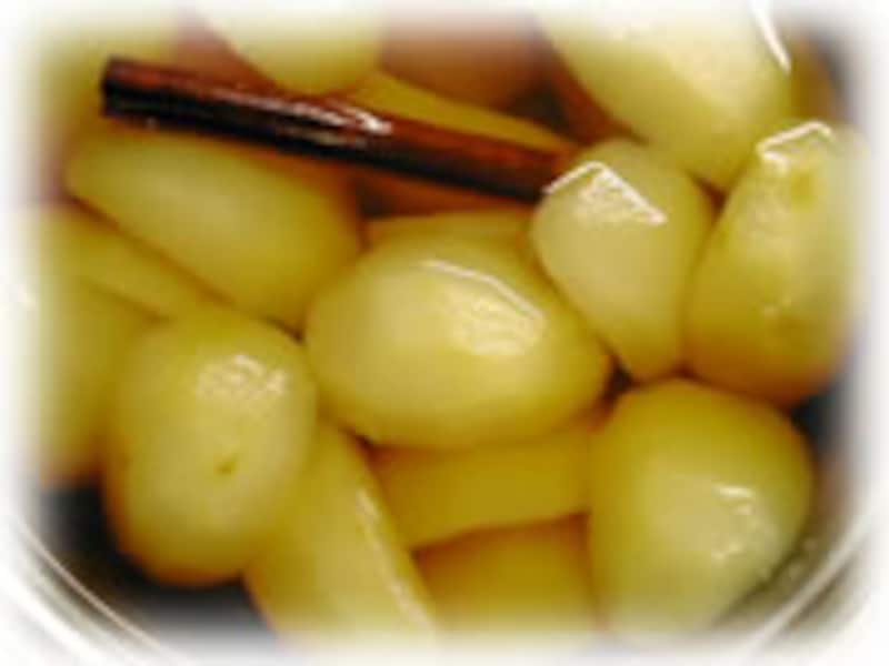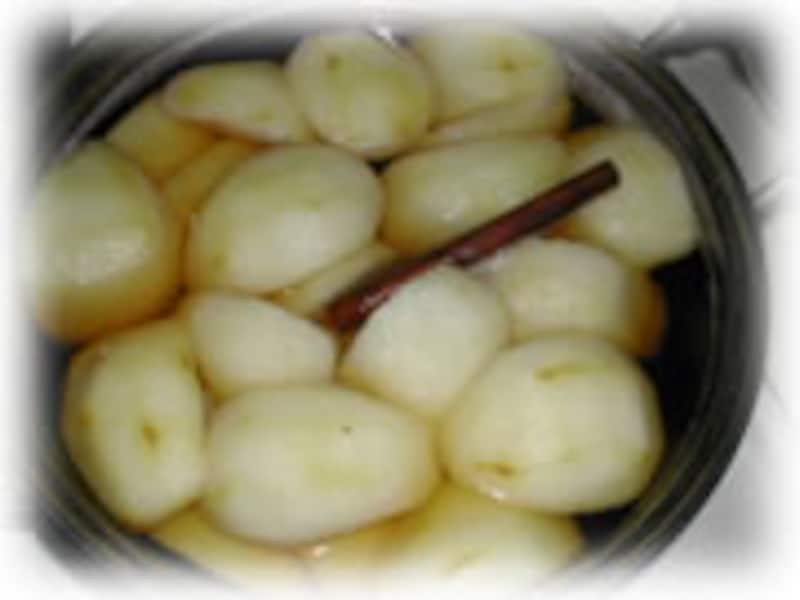 材料:ラ・フランス8個、白ワイン500cc、三温糖80g、シナモンスティック1本 |