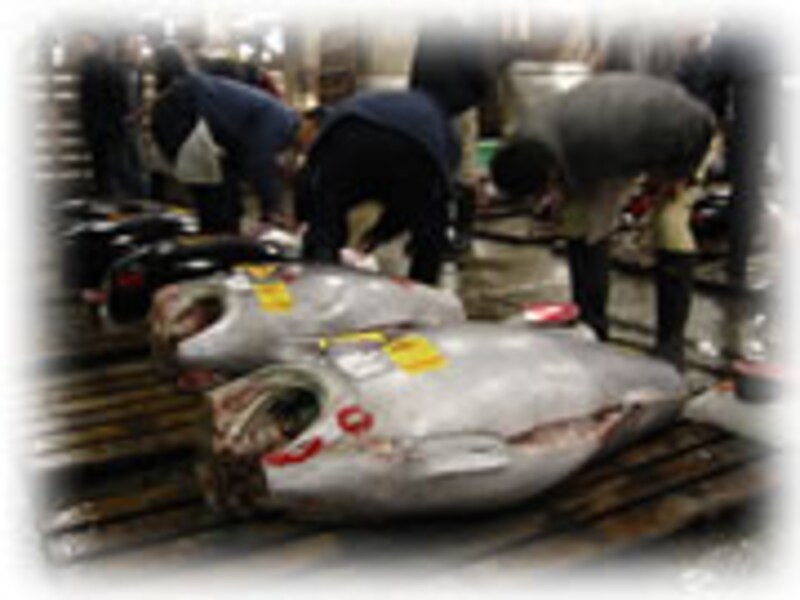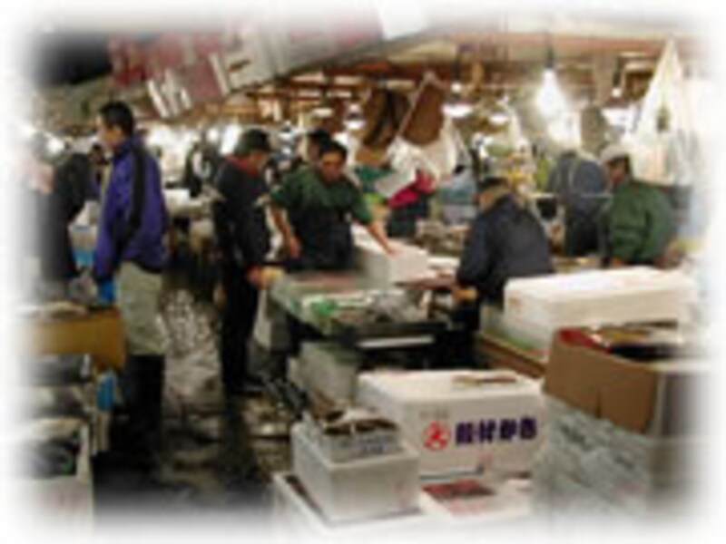 振りならされる鐘の音を合図に、午前5時半から始まるマグロのセリが、やはり一番の見モノでしょう。 |