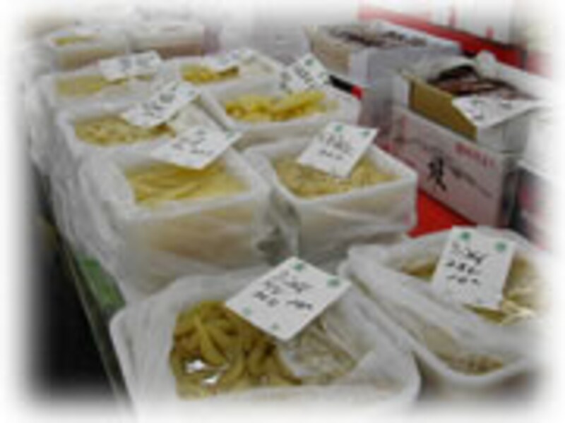 | 山陰地方では「松葉ガニ」北陸地方では「越前ガニ」と呼ばれるズワイ蟹も、これからが漁の最盛期。 | お正月用の数の子も、大量にセリにかけられていきます。こんなに沢山はとても買えない量ですね。 | |