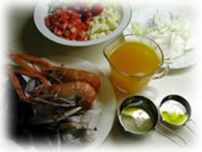 | 野菜と、魚介類のエキスが調和したブイヤベースは、作るのはとても簡単です。 スカンピが手に入らなければ、有頭エビでも大丈夫です。また伊勢エビやオマールエビなどエビの種類を変えるだけでも、そのでき上がりの味と見栄えに大きく差が出ます。時によってこのようにエビや白身魚の種類を変えると楽しみが増えますよ。 簡単だけど本格的な美味しさに、楽しい会話が弾みますね! |