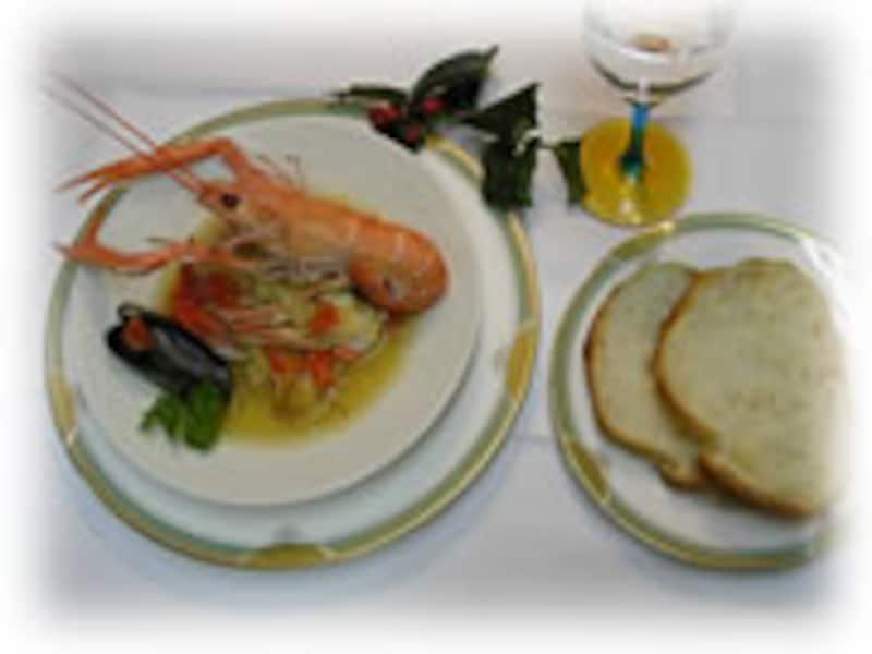 | 野菜と、魚介類のエキスが調和したブイヤベースは、作るのはとても簡単です。 スカンピが手に入らなければ、有頭エビでも大丈夫です。また伊勢エビやオマールエビなどエビの種類を変えるだけでも、そのでき上がりの味と見栄えに大きく差が出ます。時によってこのようにエビや白身魚の種類を変えると楽しみが増えますよ。 簡単だけど本格的な美味しさに、楽しい会話が弾みますね! |