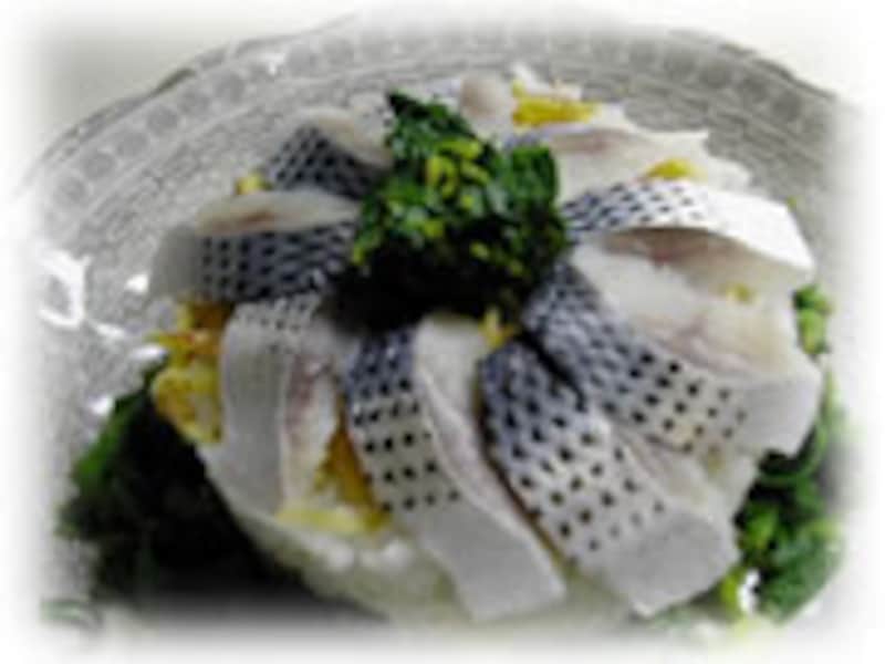 | 今回使ったコハダは出世魚ともいわれ、新子(シンコ)と呼ばれる5cmほどの1年魚は6月が旬ですが、10cmほどのコハダや、15cm以上のコノシロは年間を通して楽しめる魚です。 江戸前の寿司だねとしても有名ですが、お酢で〆て、ご家庭でも手軽に楽しめる魚ですね。 |
