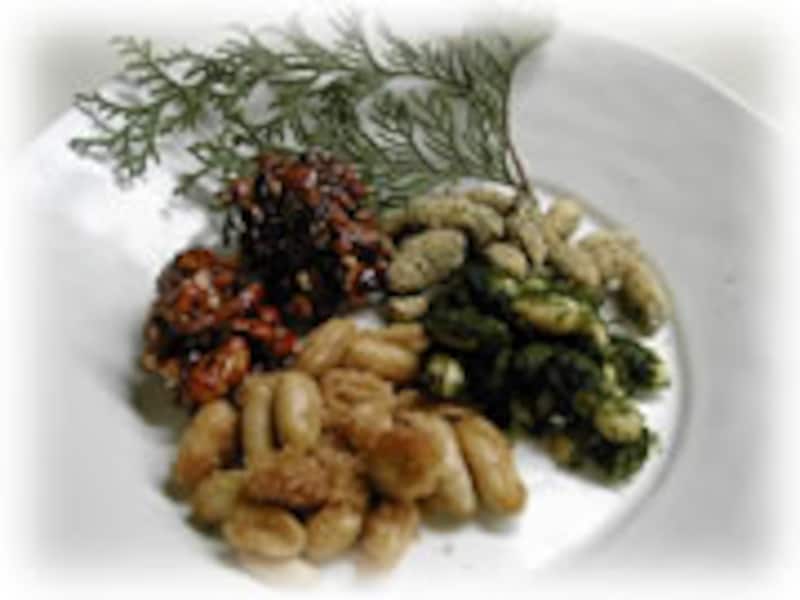 | 4・練り黒ごま、ブラウンシュガー、抹茶など、お好みの味をからめてでき上がりです。 | 味噌に砂糖、みりんを合わせた甘味噌に、砕いたピーナッツをからめたピーナツ味噌も美味しいですよ! | |