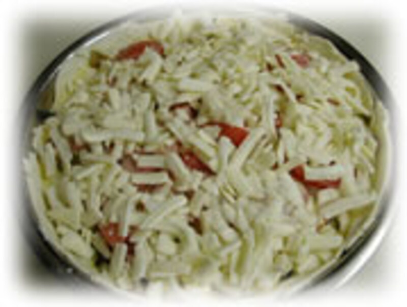 | 4・割りほぐした卵と生クリームを良くかき混ぜ、野菜の上から流し加えます。 | 5・最後にピザ用のとろけるチーズ(パルミジャーノやモッツアレラチーズをチーズグレーターで下ろすのが正式ですが)を全体に振りかけます。 | |