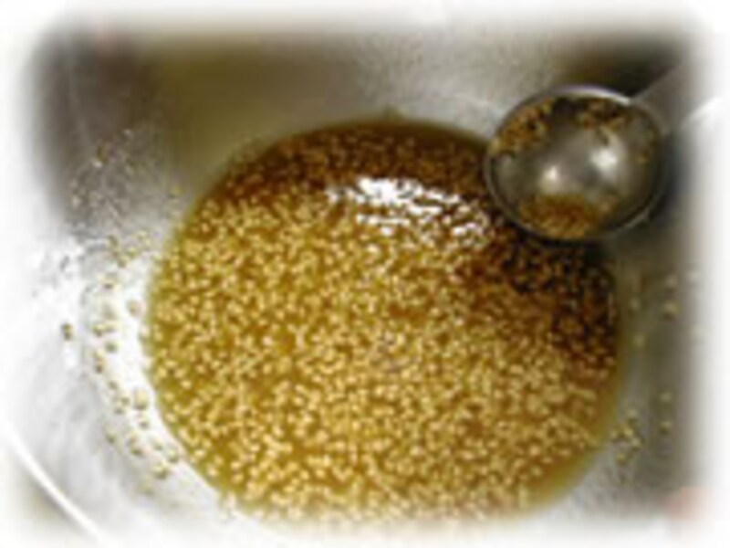 | 4・中華風ソースをつくります。材料を合わせて良くかき混ぜます。 | 5・フキは斜めに切り、菜の花も5センチの長さに切り、鶏肉と中華風ソースをからめます。 | |