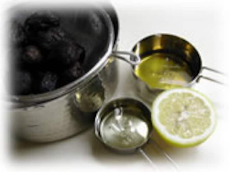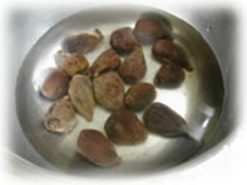 | 材料:乾燥いちじく180g、ハチミツ90cc、白ワイン大サジ2、レモン1/2個。 | 1・乾燥いちじくは綺麗に洗い、ときどき水を変えて一晩ほど浸けておきます。 | |
