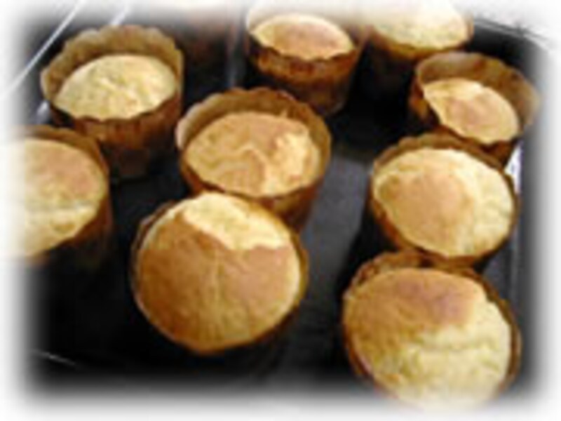 | 6・あらかじめ170度に温めておいたオーブンで20分ほど焼きます。 | プレーンマフィンにブルーベリージャムを添えてみました。 | |||||||