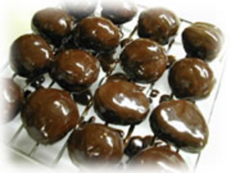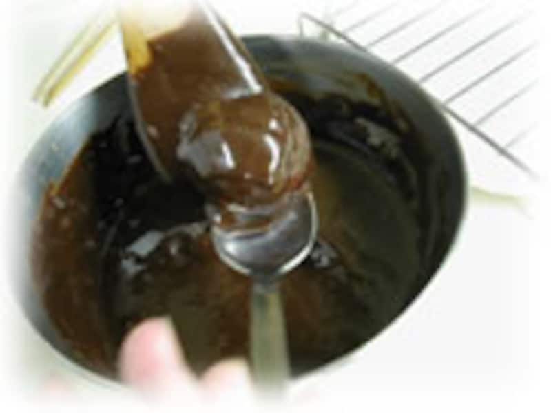 | 4・チョコレートが均一に溶け粗熱が取れたら、オレンジリキュールのクワントロ大さじ1を加え良くかき混ぜます。 | 5・栗の渋皮煮の水気を切り、チョコレートを全体にからめます。 | |