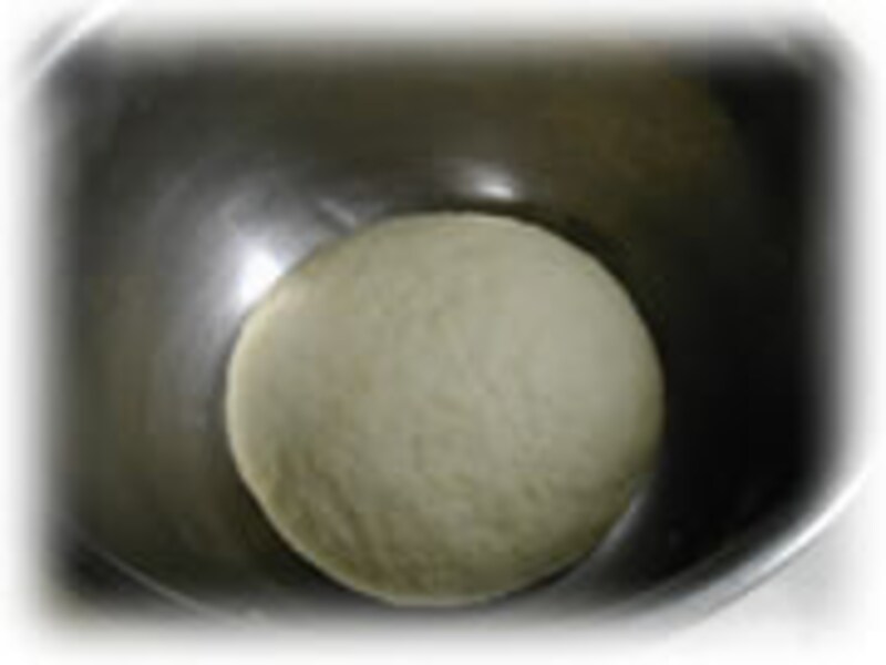 | 3・生地をこね台に移し、手のひらを使って10分間程良く捏ねます。 | 4・ボールに生地を入れラップをかぶせ、30℃で1時間程度、一次発酵をします。 | |||||||||||||