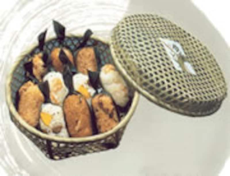 竹かごに笹の葉で包めれた「笹おこわ」は、ウナギ、豚肉、きのこ、エビ、むかごの5種類の味が楽しめます。忙しいこの季節の贈り物には嬉しい一品です! ◆笹おこわ |