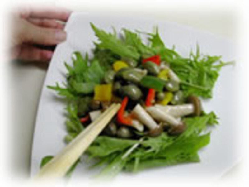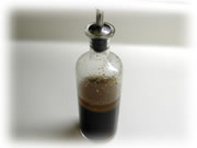 | 茹でた野菜と豆をボールに入れドレッシングで和えます。冷蔵庫で1時間くらいおいて味をなじませます。お皿に水菜を敷きビーンズサラダをかざります。 | 手づくりのドレッシングはこんなボトルを使っています。純米酢だけでなく黒酢、バルサミコ酢、ワインビネガーなどお好みの酢とごま油、オリーブオイル、サフラワーオイルなど合わせていろいろなドレッシングをお楽しみください。もちろんノンオイルドレッシングも良いですね。 | |||||||||||||||||||||
