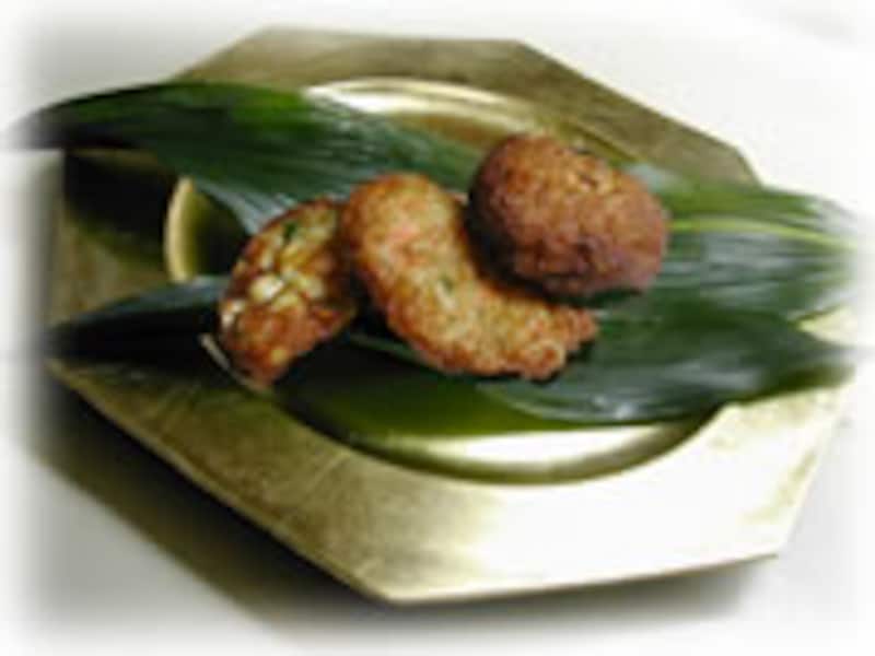 | 金色仕上げの華やかな八角の洋皿に、バランを敷き盛り付けると又ひと味違ったさつま揚げがお楽しみいただけます。 |