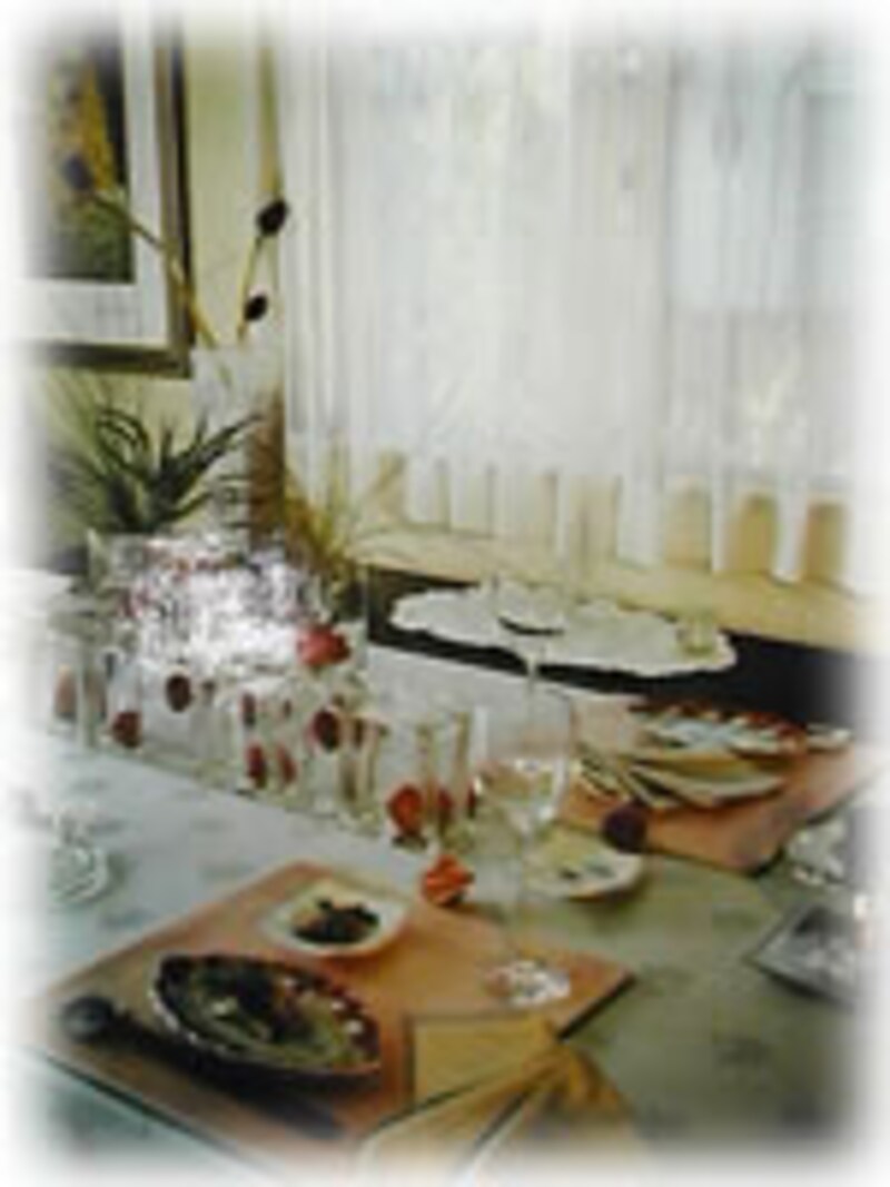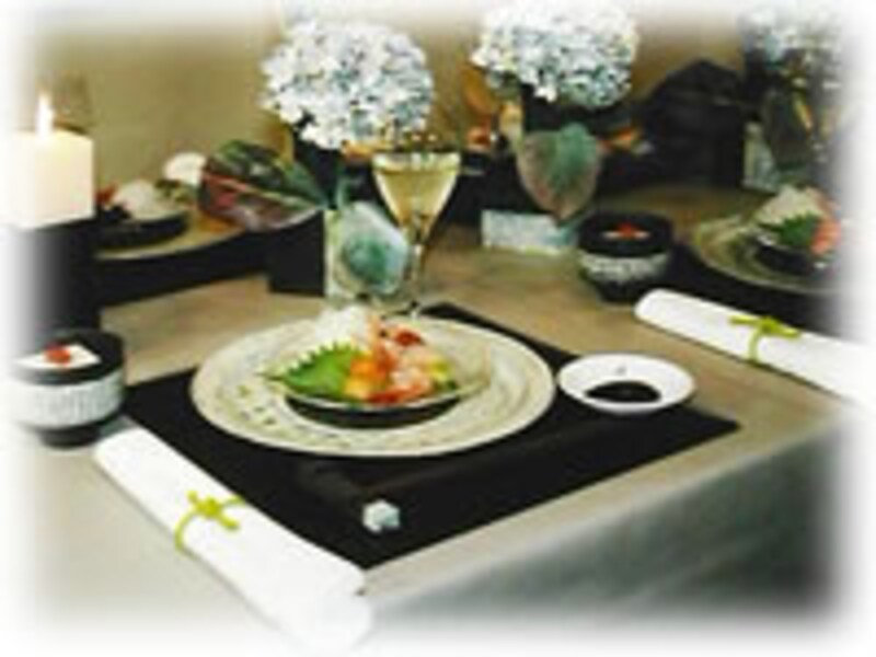 | 食卓を囲む対象者:古き友人達 季節:夏の終わり頃 セッティングされる場所:自宅リビング |