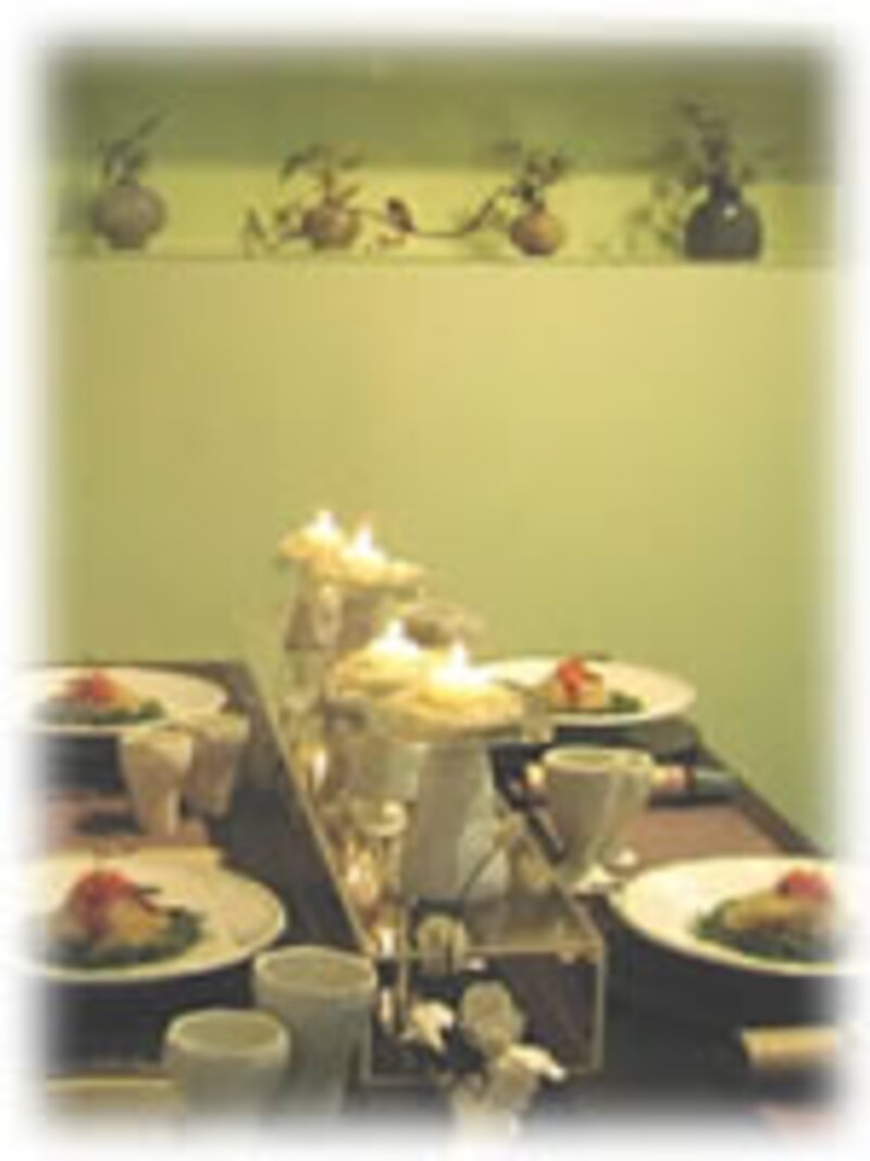 | 食卓を囲む対象者:ホテル社長、私、茶道教授、スタッフ 季節:秋、長月 セッティングされる場所:ダイニングルーム |